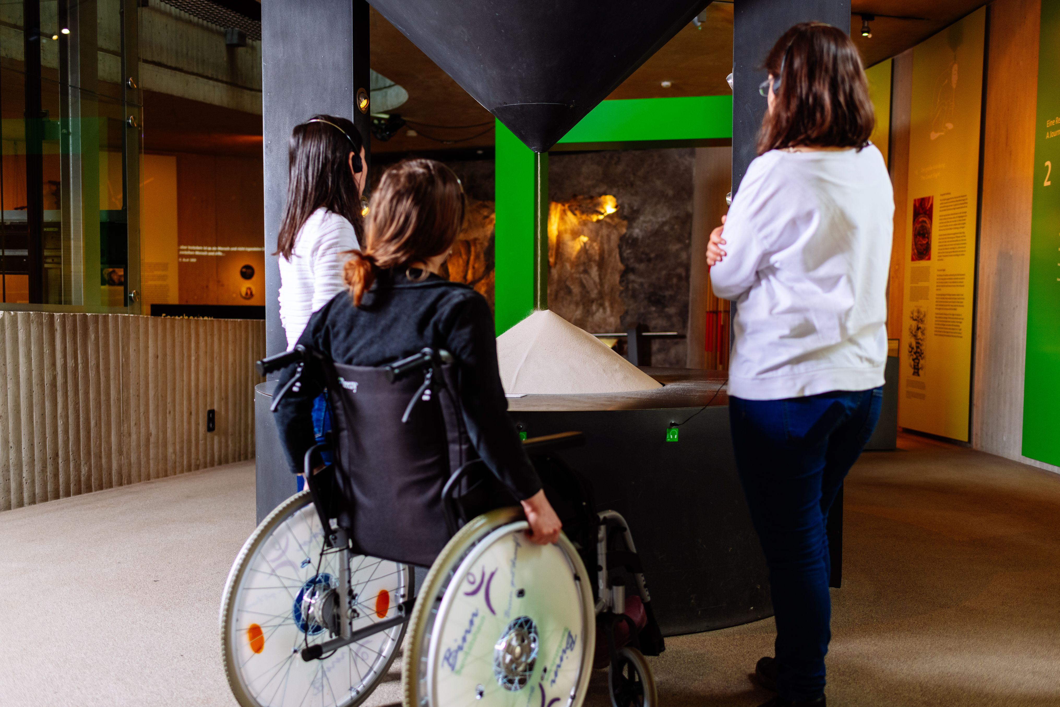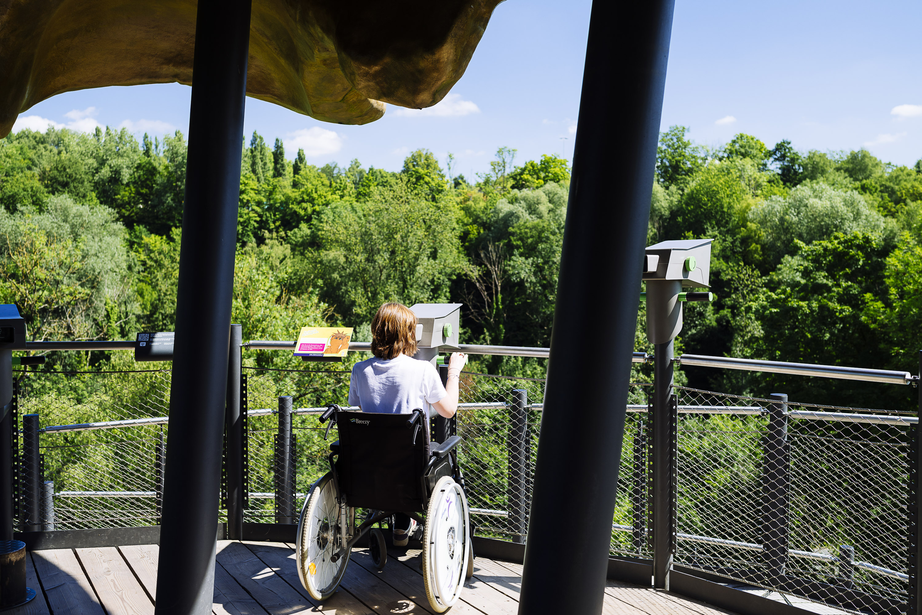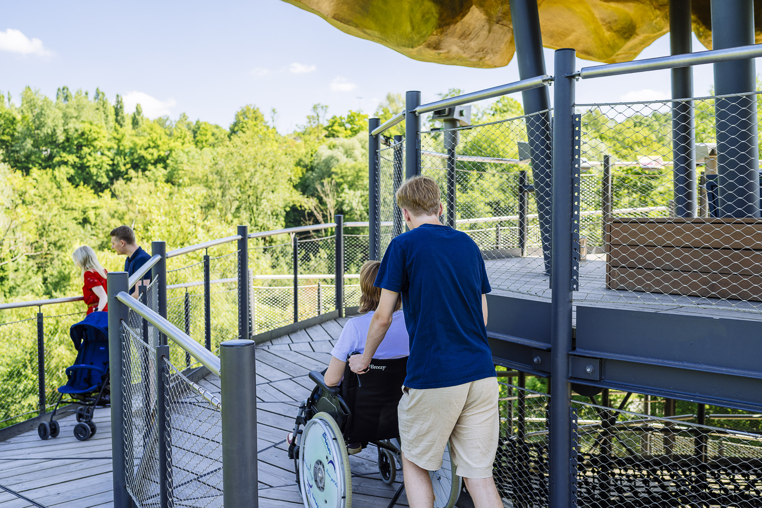 A visit to the discovery site with the new "Höhlenblick" adventure tower completes the museum tour. The approximately 22-metre-high tower with a domed roof in the shape of a Neanderthal skull offers a view of Stone Age history through virtual telescopes on a viewing platform.