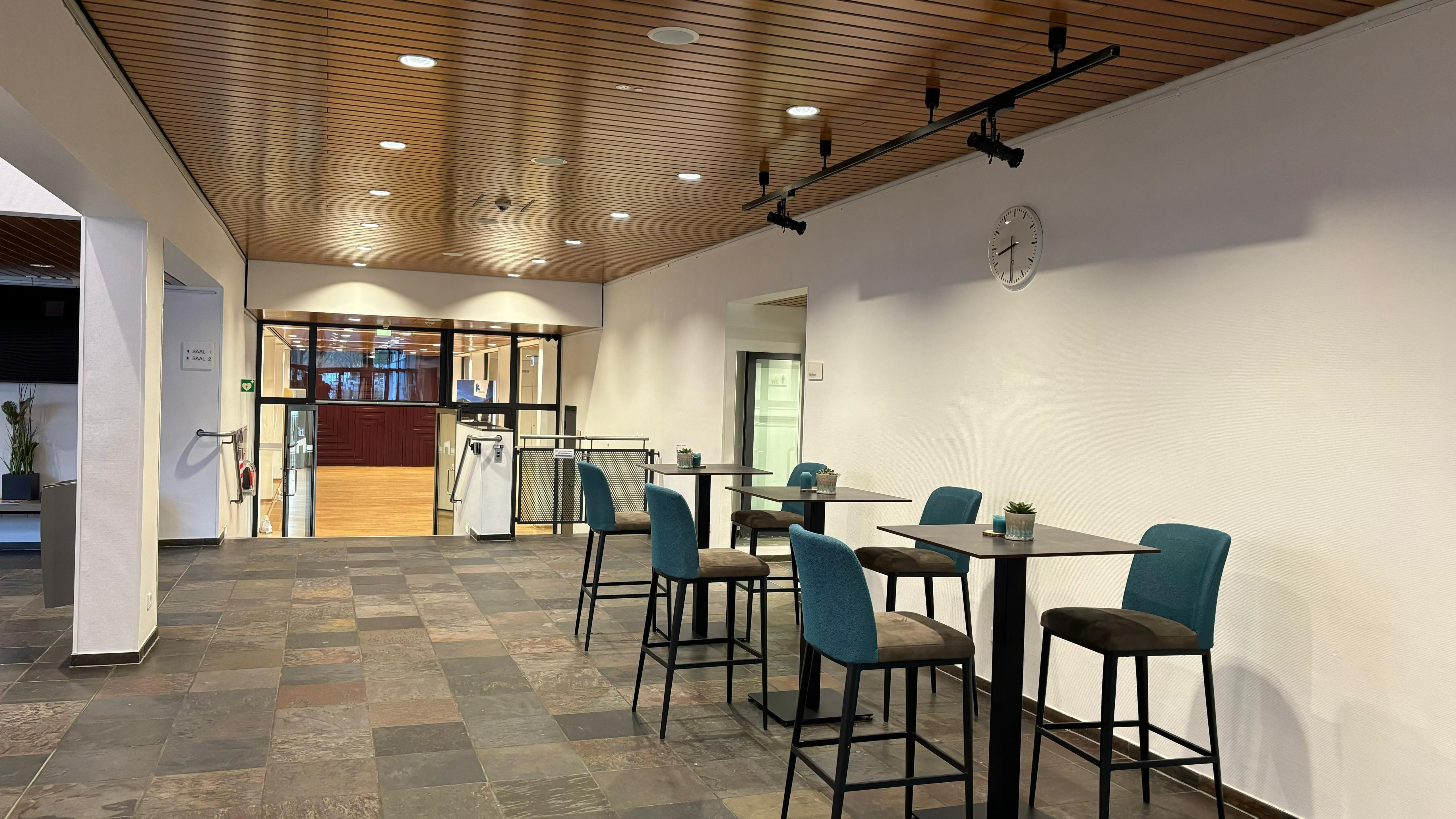 Room 2 is ideal for smaller events in a beautiful and modern atmosphere. Here too, in addition to flexible seating, the appropriate technology can be used for any event. The room is flooded with light thanks to the wall-high glass elements and there is direct access to the inner courtyard.