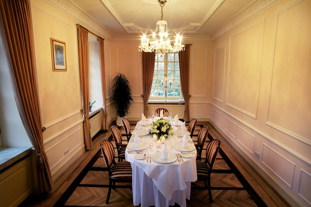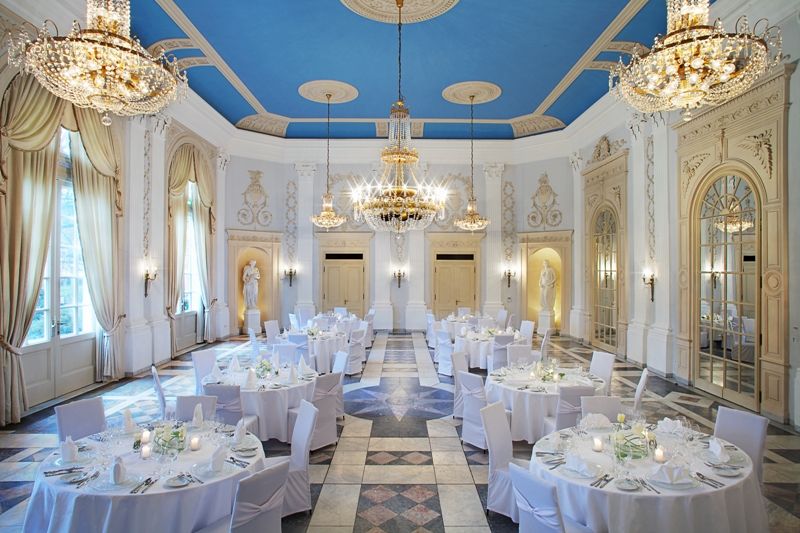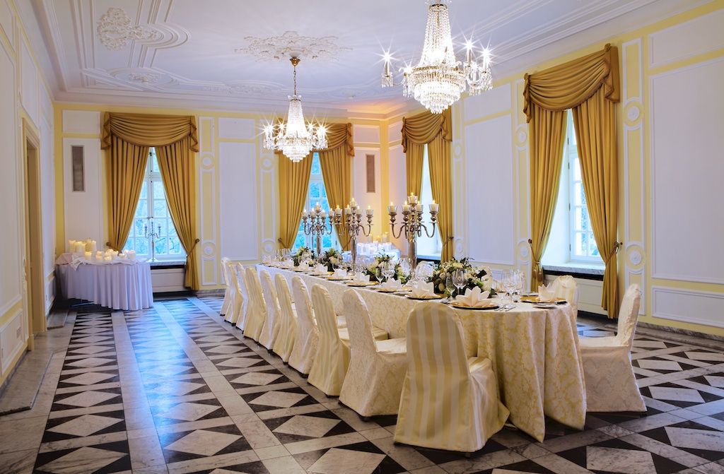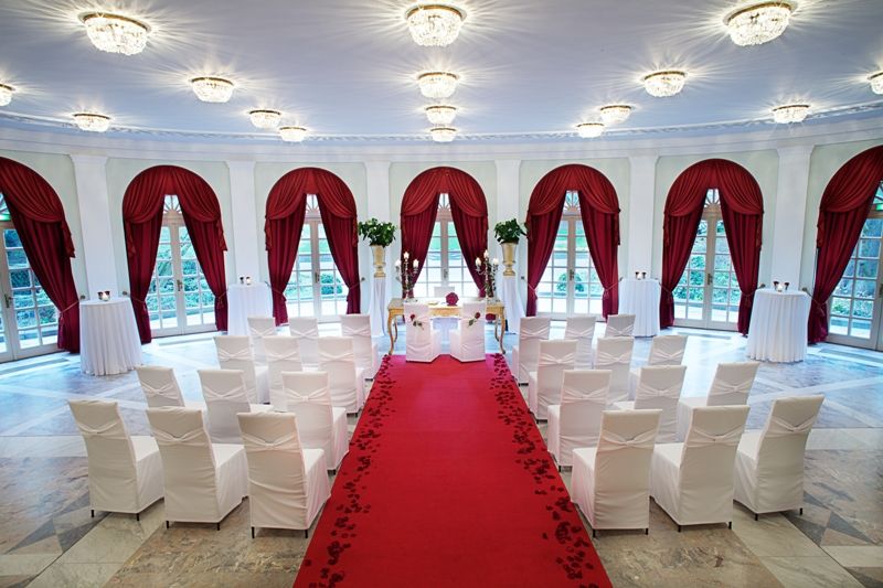 The Beethoven Hall is its largest and at the same time most impressive room. Events of 296 people in rows of chairs, 125 people in parliamentary seating, or 180 people in banquet seating can be hosted here. Combined with the Gartensaal, receptions for up to 700 people are possible. Banquet seating for 300 guests can be put up.