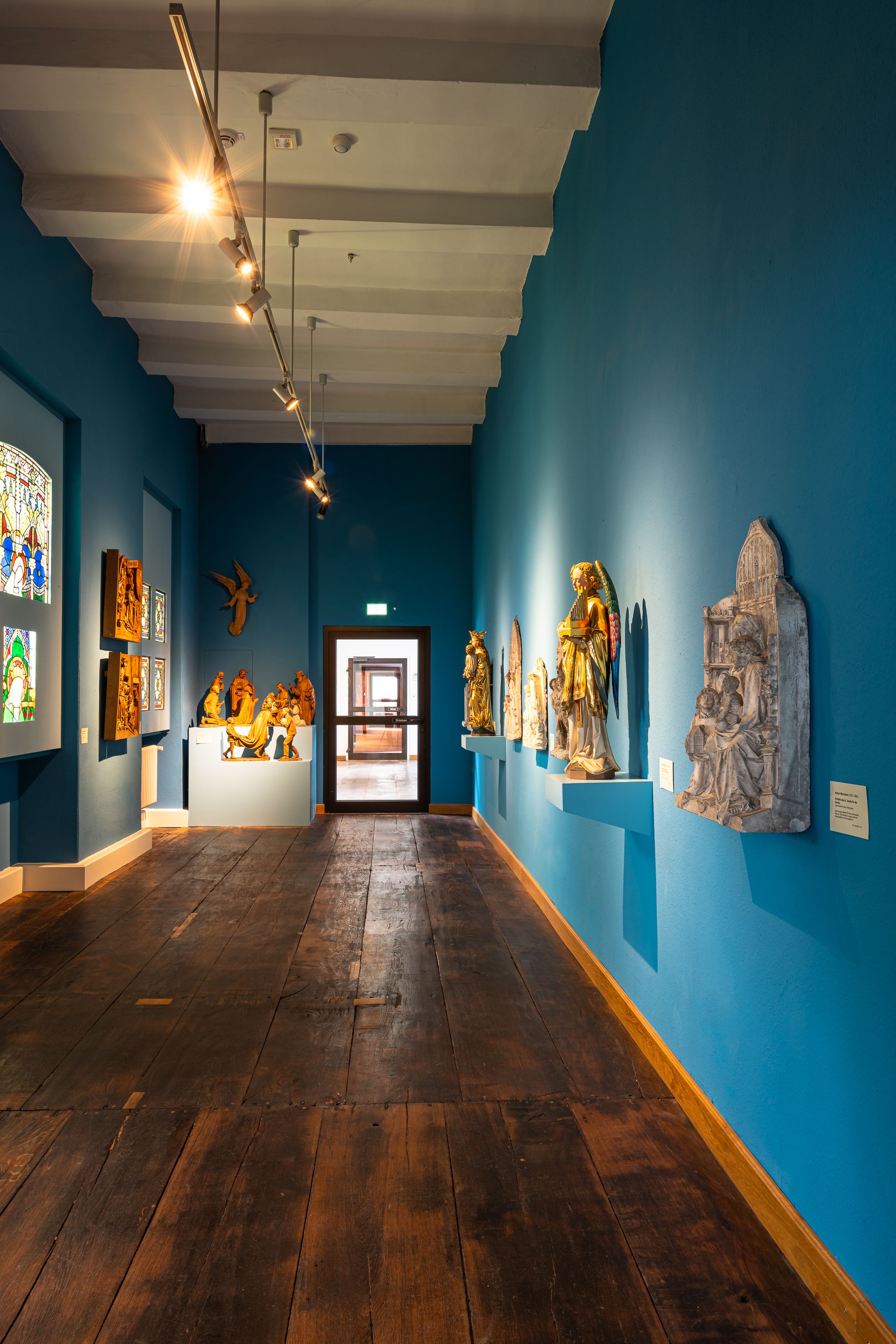 The greatest treasure preserved by Liesborn Abbey is undoubtedly the "Codex". In a roundabout way, one of the oldest fully preserved gospel manuscripts in Westphalia returned to its home in 2023 and can be shown to the public again more than two centuries after the monastery was closed. The "Book for Eternity", which was declared a cultural asset of the Federal Republic of Germany in 2018, will be presented in the sacred-looking Gospel Room. Visitors can browse through the valuable document virtually and learn more about the history of the former secular convent and later Benedictine monastery. However, the exhibitions in the historic building complex are not exclusively dedicated to sacred art. The museum also has a collection of Dutch and Flemish paintings from the 17th century, presents objects of Westphalian domestic culture from the Baroque to the Biedermeier period and is in possession of numerous prints and drawings by the painters Wilhelm Morgner and Eberhard Viegener, who were born in neighbouring Soest.