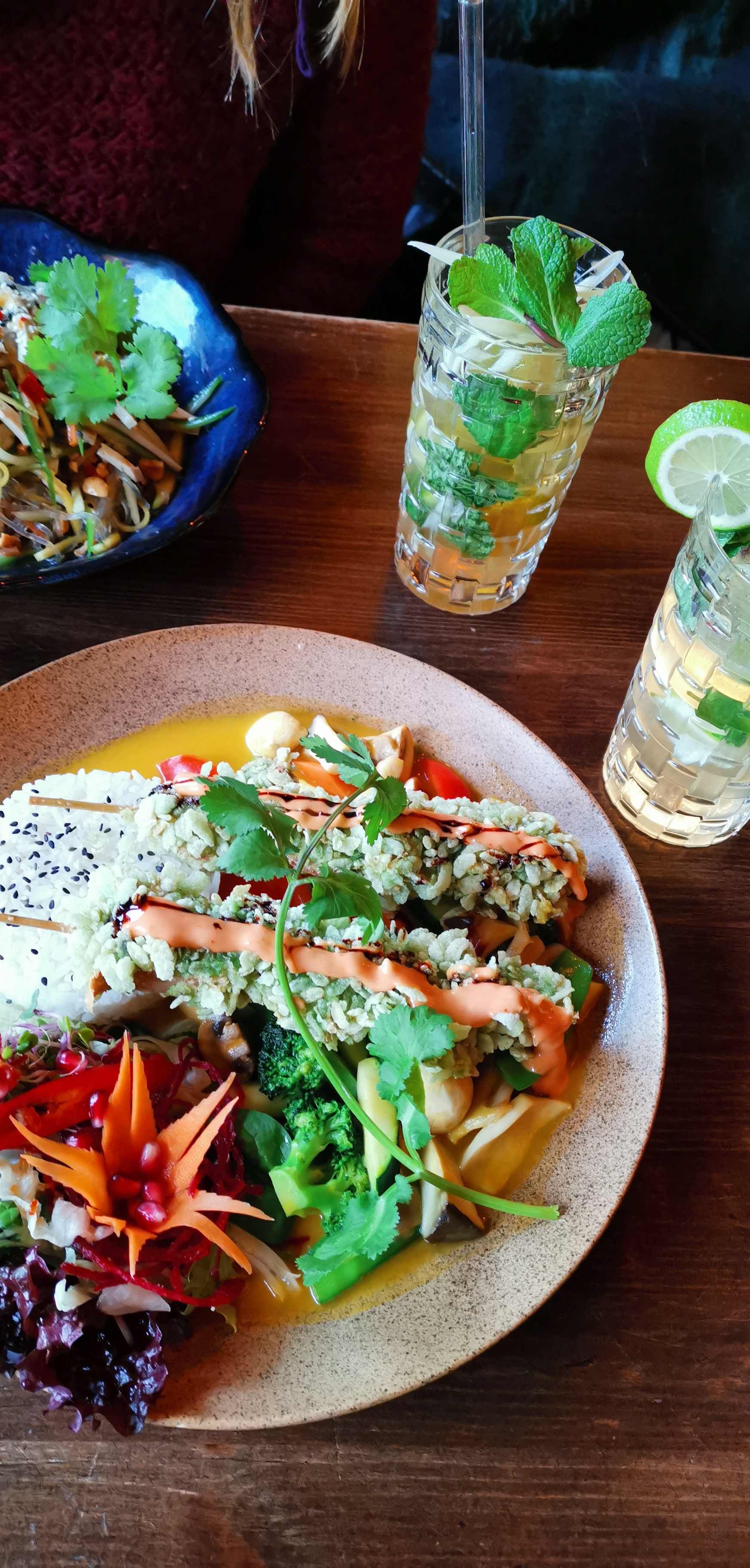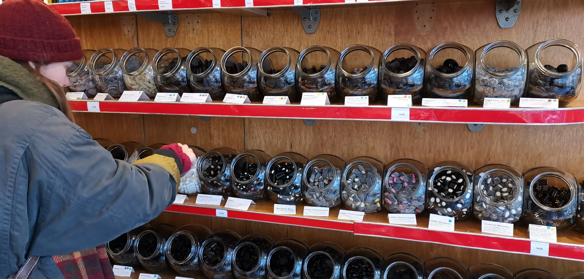 We have now covered a few kilometres. Despite the icy temperatures. But we've only ever touched the central shopping street in Ehrenfeld: Venloer Straße. Our stomachs are starting to growl. Passing Kebapland, which is said to have the best kebabs in the city (beware, there can be very long queues here!), we set off in search of something vegetarian - and choose dessert over the main course: Schwarze Liebe, a liquorice shop. A mixed bag and a liquorice cola are a must, at least for one of us. We stop off at Hanoi Vegan for lunch. A vegan Vietnamese restaurant that also serves delicious homemade lemonades. The right choice. It tastes simply delicious.