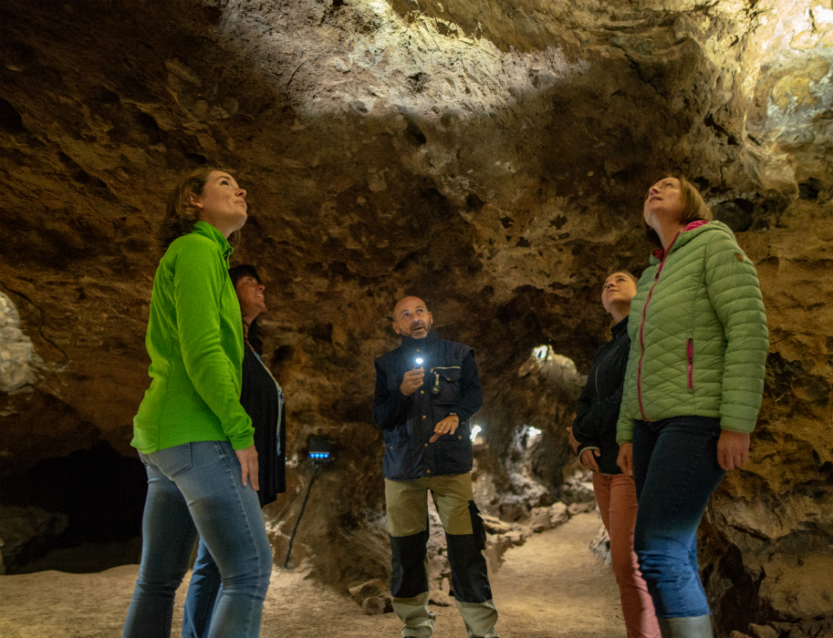 Cleaned of the dust of centuries, modern LED lighting bathes the underground lakes and fossilized creatures such as sponges, shells and corals in a mysterious light. Visitors can immerse themselves in this bizarre cave with 380 corridors and a wealth of fossils that is rare in Europe on various themed tours. On the "Fossil Journey", for example, they walk over formerly buried streams, meet the ancestor of the living fossil "Nautilus" (pearl boat) and experience a light show with background music.