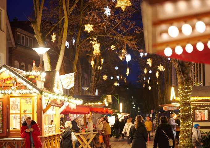 The illuminated stars, shining trees and historic buildings, together with the warm and cold sea of lights, create an incomparable atmosphere. The Kurpark is also a must for anyone looking for special gifts. At the Westphalian Gift Market, artisans take turns presenting their handmade treasures: from ceramics and woodwork to jewelry and textiles. You are sure to find something unique here that will bring joy to your loved ones.
