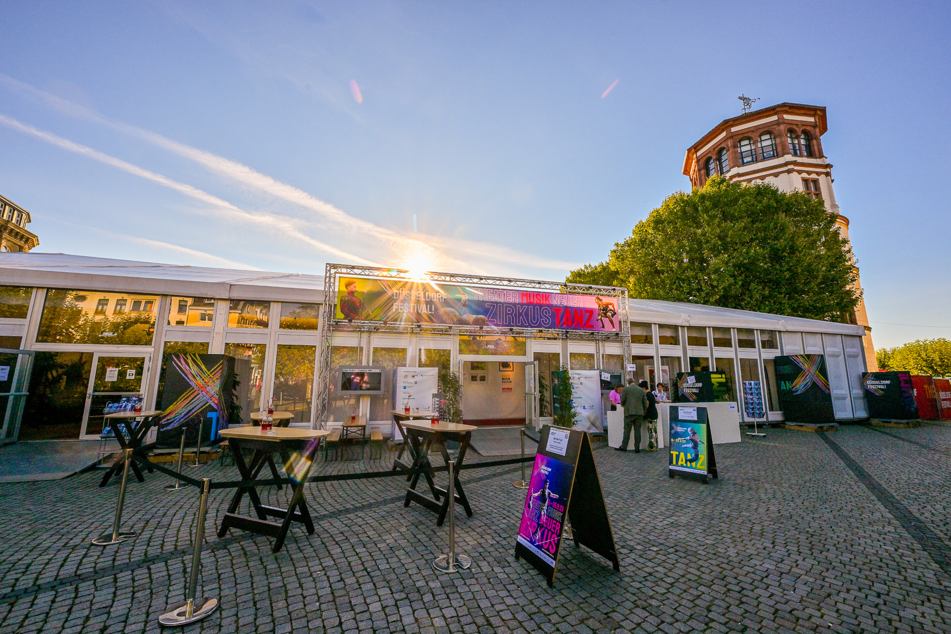 It's getting dark on Burgplatz on the banks of the Rhine. It's really busy - lots of people are gathering in front of the Düsseldorf Festival's large, brightly lit theater tent. They are all eagerly awaiting the performance in the specially constructed venue, which since the early 1990s has been the heart of the annual cultural event that takes place over 19 days in September and is characterized by its diverse programme of performing arts. Launched as the "Altstadtherbst Kulturfestival", the Düsseldorf Festival has established a firm place for itself in the cultural landscape of the Rhine metropolis over the years - with around 20,000 guests per year.