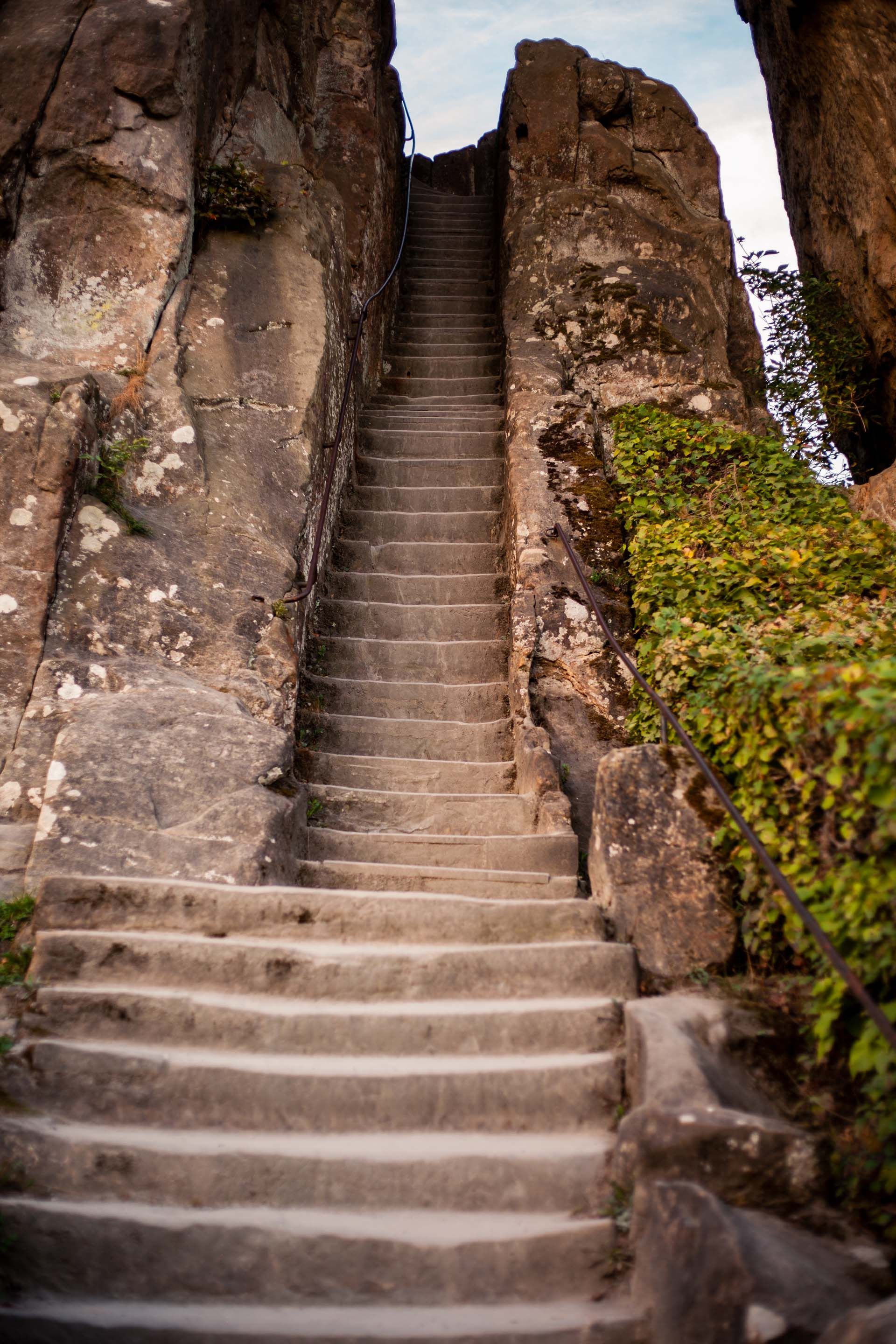 So I set off, always following the white H on a black background. The paths are well-maintained, sometimes narrow, but for the most part very moderate, even for inexperienced hikers like me. I hardly notice that a light drizzle has started in the meantime. The foliage of the tall trees is too dense and the raindrops roll off. But maybe it's just the drops of sweat that occasionally drip down my forehead. The climb is steeper than I expected. Neither the one nor the other bothers me. On the contrary. Rarely have I been so far away in my thoughts as here in the midst of peace and seclusion. Rarely have I been so aware of nature as I am now, seeing toadstools in the wild for the first time ever or looking at my own footprints in the damp forest floor. Is this really me ...?