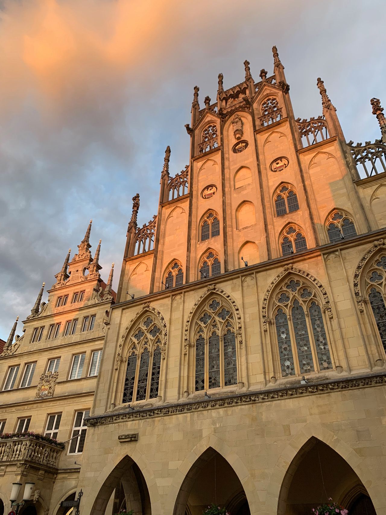 In fact, the dove of peace had already done a great deal of work in Münster long before Picasso. The Peace of Westphalia, which ended the Thirty Years' War, was signed in the cathedral city in 1648. On the way to the Peace Hall in Münster's Historic Town Hall, the memorial to this fundamental event for Europe, I startle a few of their grey-feathered conspecifics as they strut across the cobblestones of the Prinzipalmarkt, cooing importantly and craning their necks.