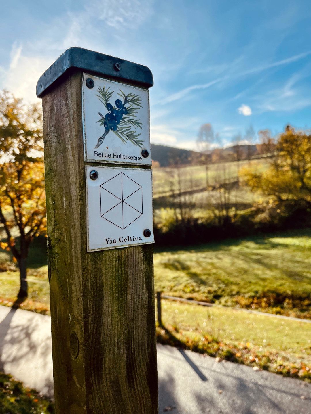 6.30 am - departure. We, Ilonka and Hannah, are still a little tired in the car. Our destination: the Via Celtica in Dotzlar in the Siegen-Wittgenstein region. Because admittedly: We really can't be described as early risers. But it soon becomes clear after the first few kilometres that getting up early was worth it. The rising sun colours the sky first purple, then a vibrant red-orange. A golden autumn morning straight out of a picture book. The tiredness disappears completely as we leave the motorway and drive through the countryside on country roads. Wisps of mist hang in the valleys and early frost glistens on the meadows. We are certain: this is going to be a good day!