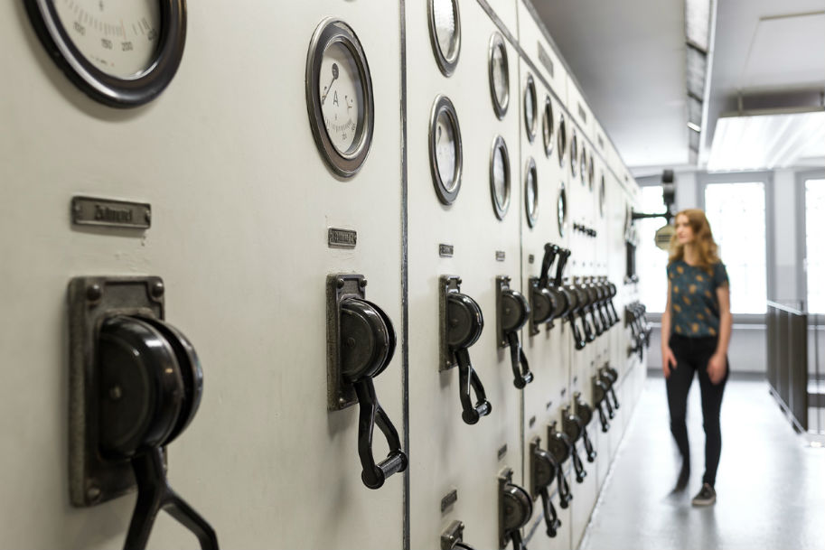 On the floors above the turbine cellar, the large switchboard shows how the electricity was distributed in the factory. As early as 1903, the factory owner's home and the town of Engelskirchen also benefited from local electricity generation. Thanks to the power station in the factory, the electric streetlights here usually lit up reliably.