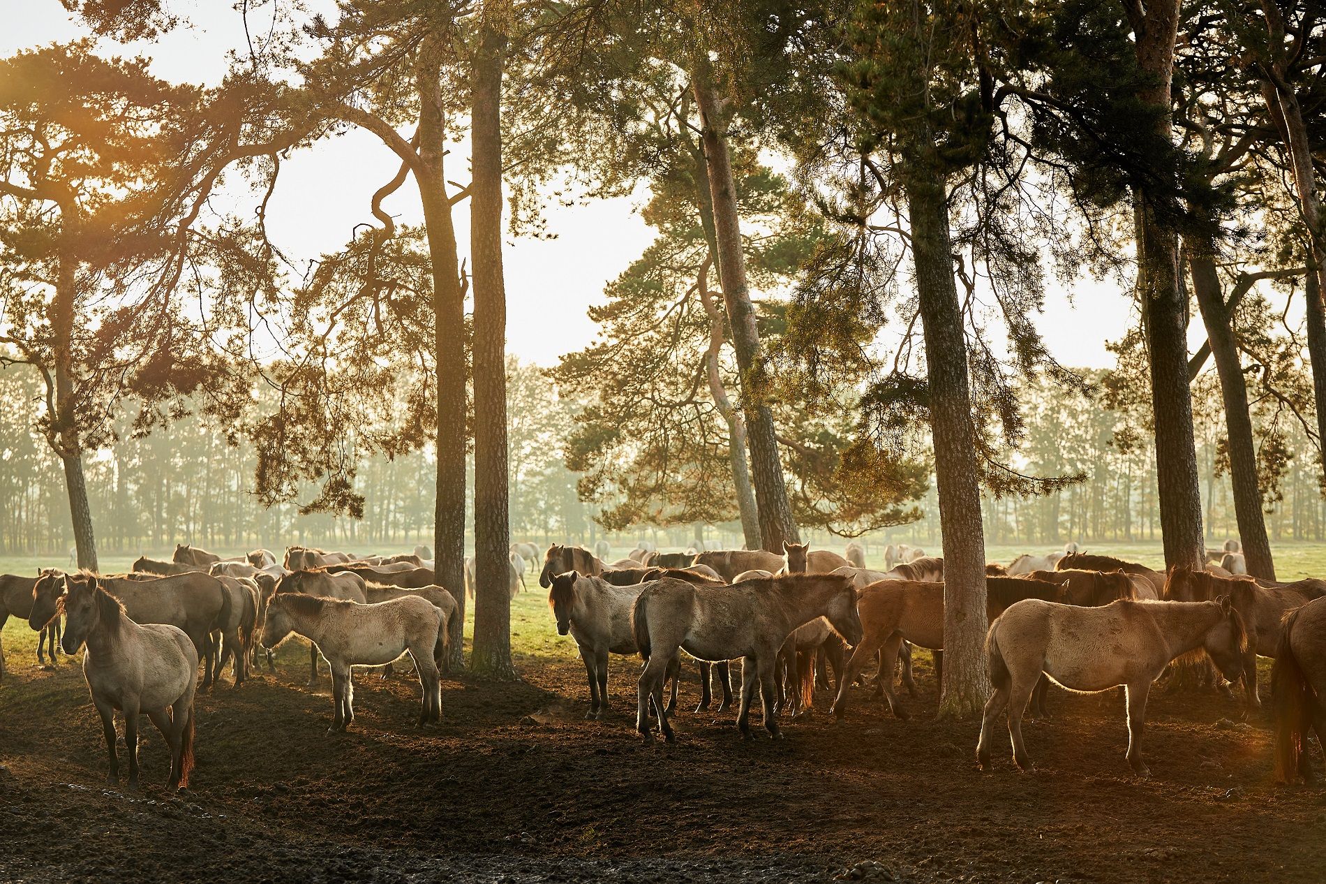 The stars among the four-legged inhabitants can be found in Münsterland: around 400 wild horses graze or gallop through the Merfelder Bruch near Dülmen and are largely left to their own devices. In spring, summer and fall, you can observe the robust mares, stallions and foals on a walk or join a guided tour. A special highlight every spring is the wild horse capture, where wild one-year-old stallions are caught with bare hands and separated from the herd.