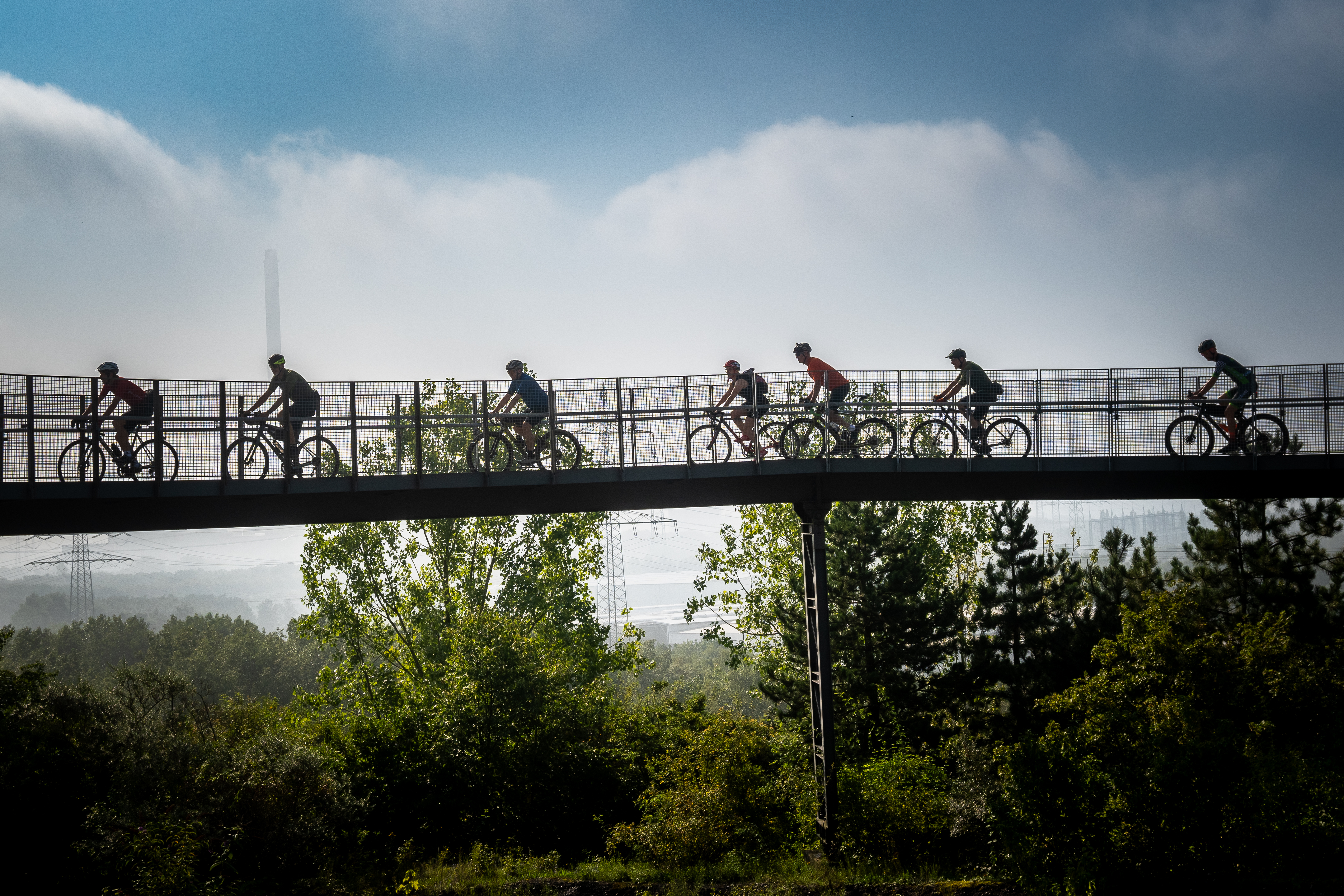 The start and finish of the 34-kilometer circuit is the former Ewald colliery in Herten. No shift has been worked here for a long time and the site is wildly overgrown. However, the old winding towers are still standing and form the perfect backdrop for the start of this easy tour through the past and present of the Ruhr region. After crossing the Emscher, the route continues along a little-known railroad line to the Consol colliery in Gelsenkirchen, where numerous works of art have been installed in the park, as well as to the solar bunker and the former Almaring race track. A mysterious place that is almost forgotten and therefore all the more attractive. All cyclists must make a stop at the Erzbahnbude cult cyclists' meeting point before setting off on the return journey. This leads past the viewing platform at the Pluto spoil tip and a garage yard with great mining motifs on the garage doors. The highlight of the final stage is the ride over the Dragon Bridge. It leads to the Hoheward spoil tip, where cyclists are greeted by a dragon.