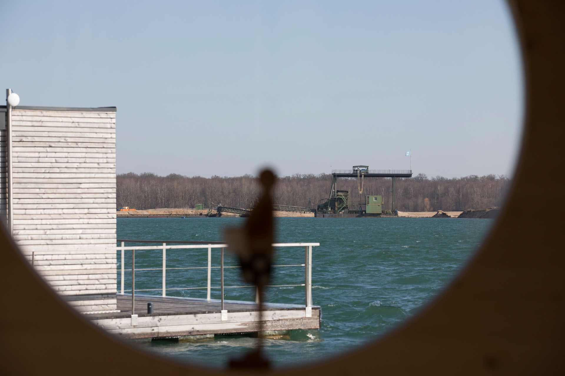 The "Biberburg" rocks gently back and forth. A gentle swell sets the 36-tonne wooden house, which is firmly anchored to the shore, in motion. And for a moment on the large terrace, it really does feel as if you are travelling out onto the quarry pond, whose water shimmers blueish-turquoise in the sun. "The lake has grown with me," says Volker Dingebauer. Dozens of farmers like him once farmed here. Most of them have given way to gravel extraction. And huge excavators, which tirelessly remove the sand from a depth of twenty metres, still block the view to the edge of the forest on the other side of the lake. But they already look as small as toy cars from a distance, and soon they will have disappeared completely, leaving the space to rare animals such as cormorants and Arctic wild geese, which have reclaimed a piece of nature here. Volker Dingebauer has even spotted a white-tailed eagle, and when the wild geese migrate south in autumn, it is a very special spectacle. "Every year, pairs of storks come to nest here," says the nature lover, proudly pointing to a mast in the farm's own orchards. He himself built the stork's nest here a few years ago.